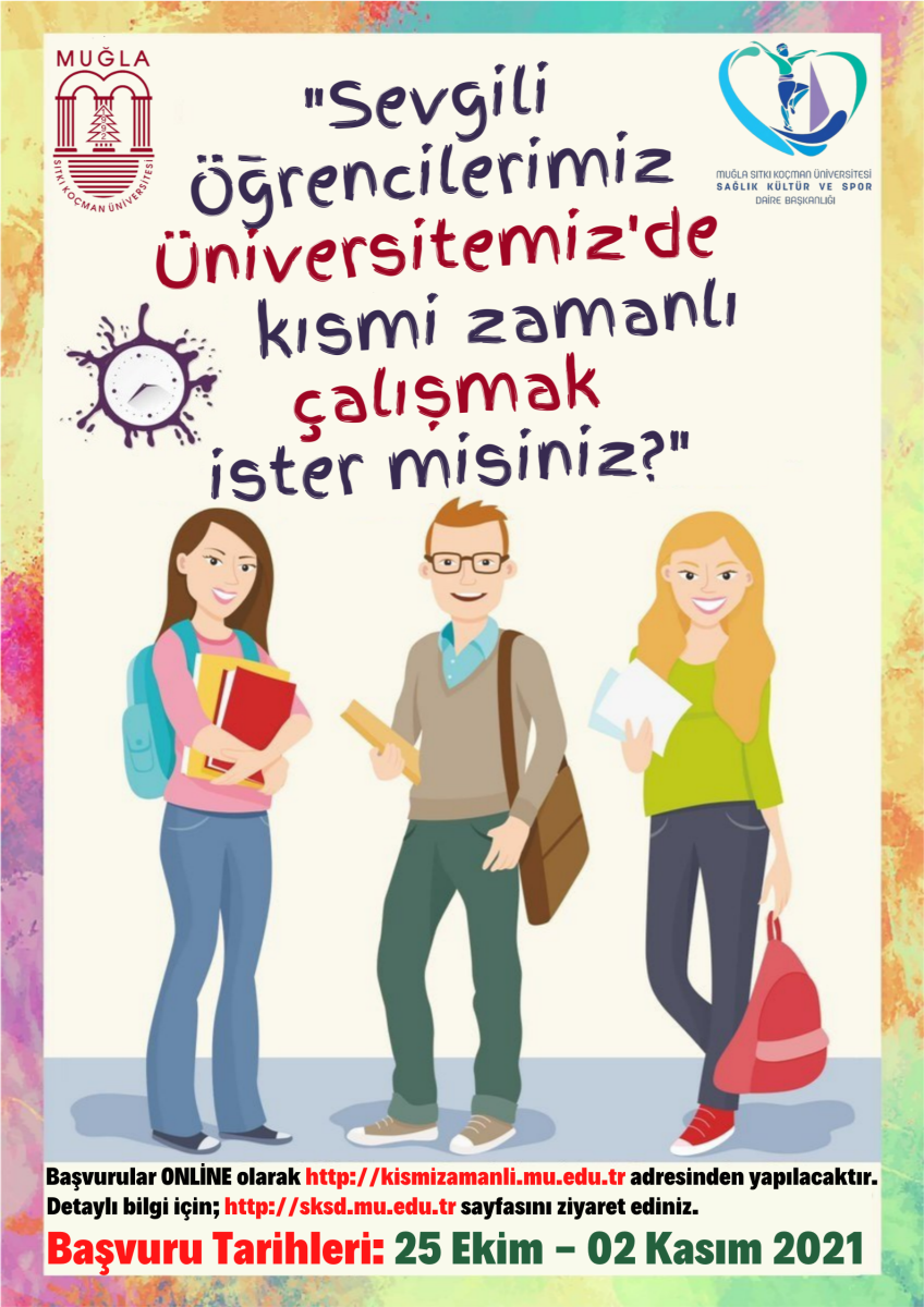 Kısmi Zamanlı Öğrenci Başvurularına ilişkin Duyuru Başvuru ile ilgili detaylı bilgi için TIKLAYINIZ. Son Güncelleme : 12.09.2022 14:54 Okunma Sayısı : 3681